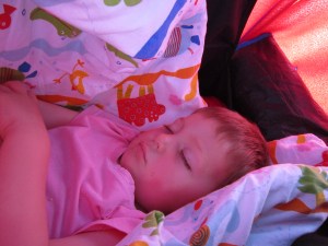 All children are different, but all babies and most toddlers will need a sleep or two during the day. I’ve met many two year olds who won’t sleep properly at night unless they get a good couple of hours’ nap in the daytime. Most toddlers can keep going for 5 hours or so before dropping asleep, and you have to make sure their naps are carefully timed so bedtime will still happen. Sometimes this means draping the pushchair with blankets to make a portable bed, as on this occasion when I was attending a school sports day at naptime. Little brother slept peacefully parked up under a tree and missed all the action!