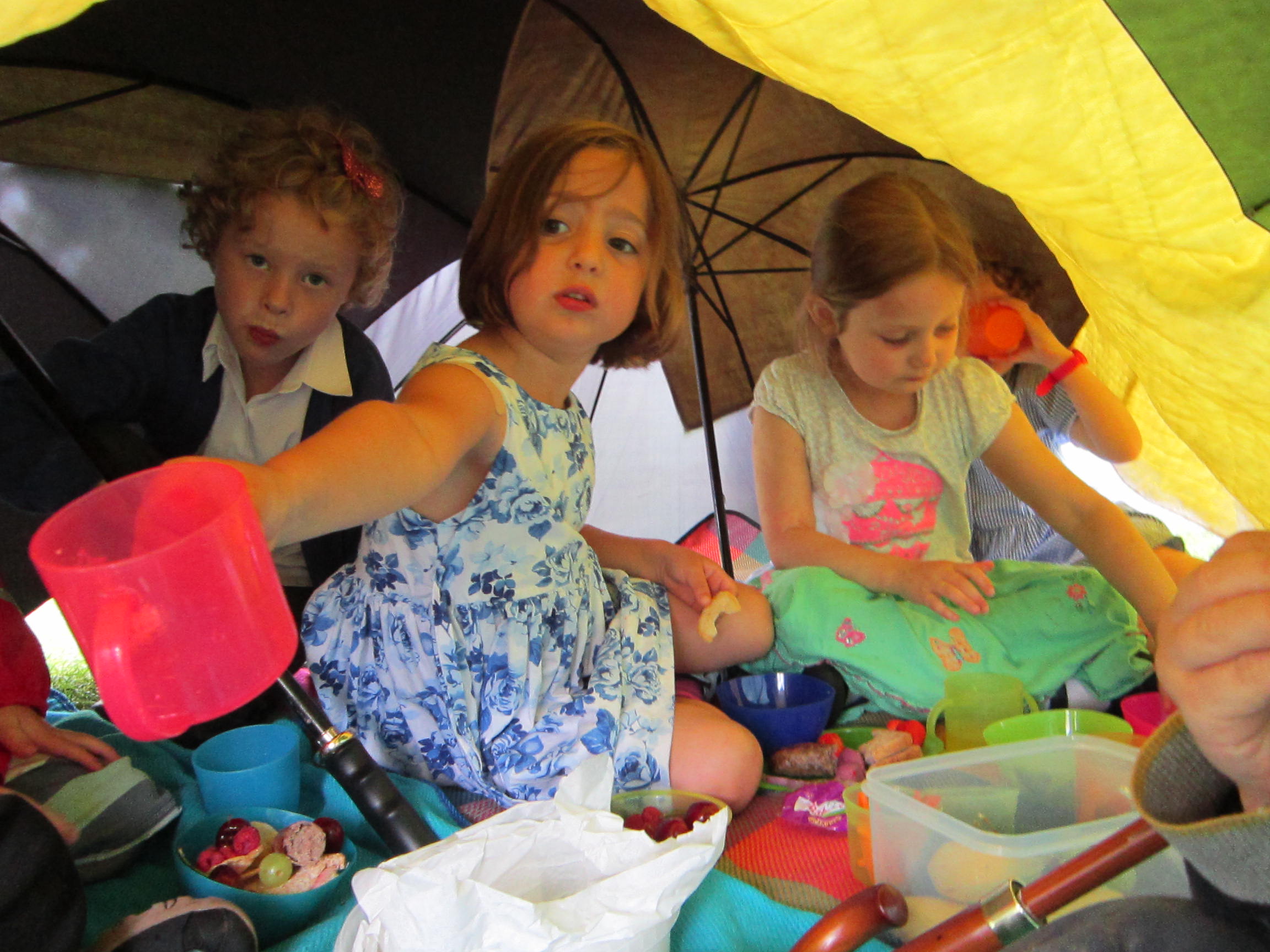 As I monitor the energy levels left in that ‘petrol tank’, I make sure I do my best to keep them topped up with regular snacks and drinks. For under-fours it can make the difference between a happy outing and a diabolical nightmare! Hunger can make a child aggressive or fretful and lead to nasty meltdowns. I’ve learned NEVER to leave the house without my Everest Expedition bag of sandwiches, snacks, drinks, wipes, towel and spare clothes and nappies. A rest and a picnic can work wonders and buy you at least another hour or two if you’re having an extended outing. I’m a firm fan of picnics. They work especially well in a tent in the rain! (Tends to stop them running around the park while eating).