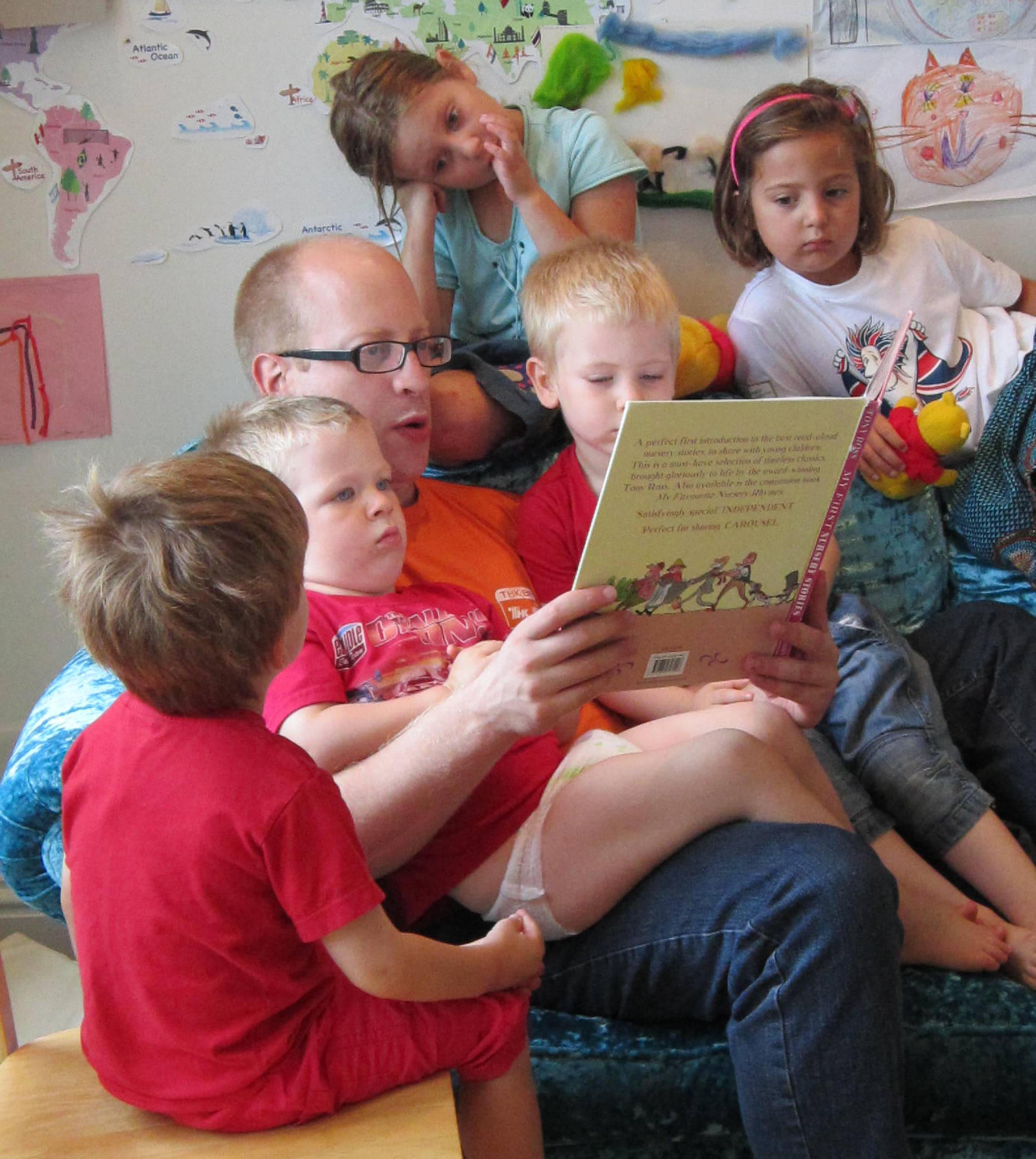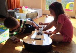 A good one for playing in the car. Look at passers-by interacting with each other, give them funny names such as Mrs Collywobbles or Mr Smartypants and try to guess what they’re saying to each other or how they’re feeling. Or if they seem sad or grumpy, think of ways to cheer them up. It also works with passing pigeons! Or look out the window at the garden on a rainy day and tell the children what the birds in the trees are doing and saying to each other, pretend they are playing hide and seek etc. (I’ve kept three kids under six entertained for half an hour with this one.) Great for building intuition and empathy as well as teaching about nature.