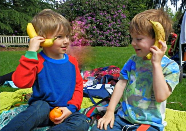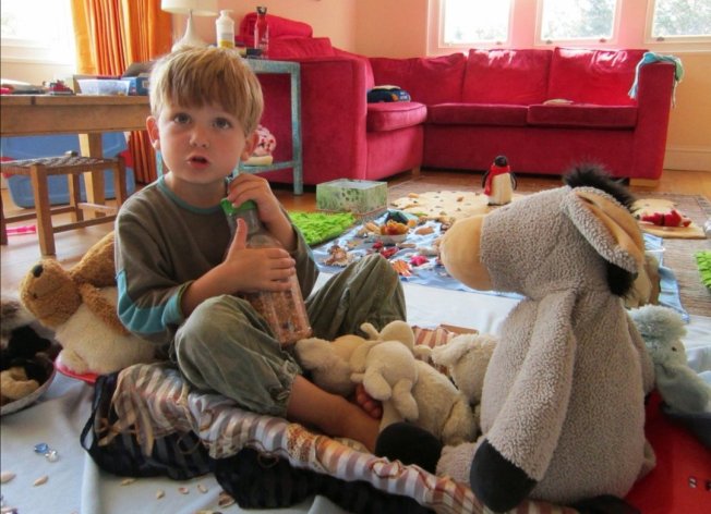 Children need fun and laughter. Tickles, physical games, funny stories and their own random sense of humour that can make a joke or game out of anything. That’s how play operates – everything becomes a game or something fun to explore!
